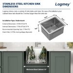 - SOLID CONSTRUCTION: Logmey undermount bar sink is constructed of heavy duty 16 gauge SUS304 stainless steel. Stainless Steel kitchen sink with commercial-grade brushed finish resists dents and scratches, is easy to clean and has a long service life.