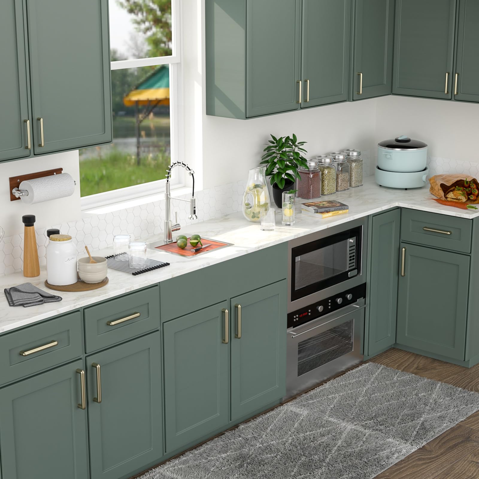 - Bottom rinse grid: Made of 304 stainless steel with rubber feet, effectively prevents dishes from damaging the sink while keeping them elevated for fast drying.
