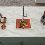 - Top mount kitchen sinks with faucet holes for a more integrated look and feel.