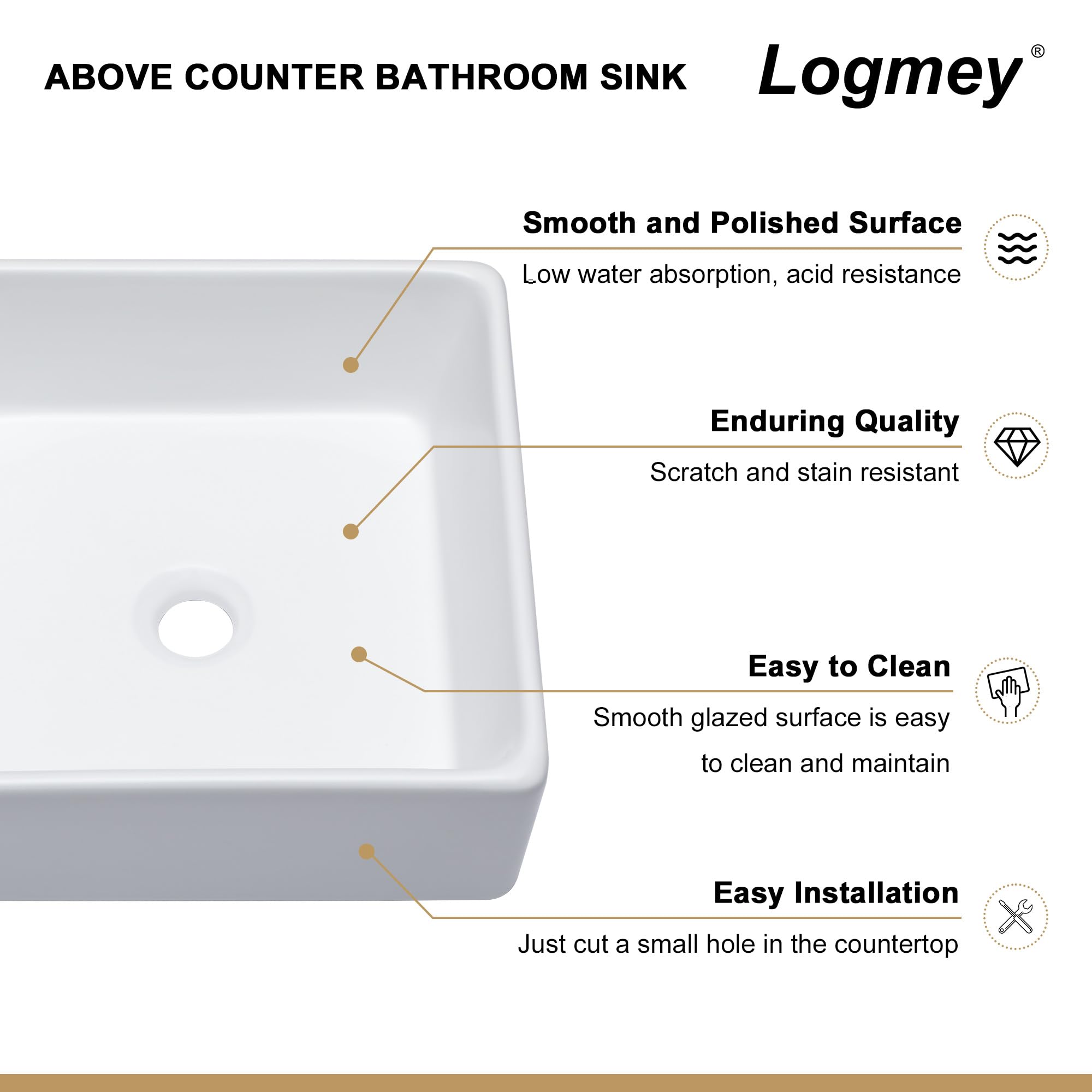 - Premium Quality Ceramic Construction:This rectangular bathroom sink is made of high quality ceramic firedat high temperatures, the surface is glazed, smooth and easy to clean, with low water absorption, nocracking, no discoloration, and long service life.
