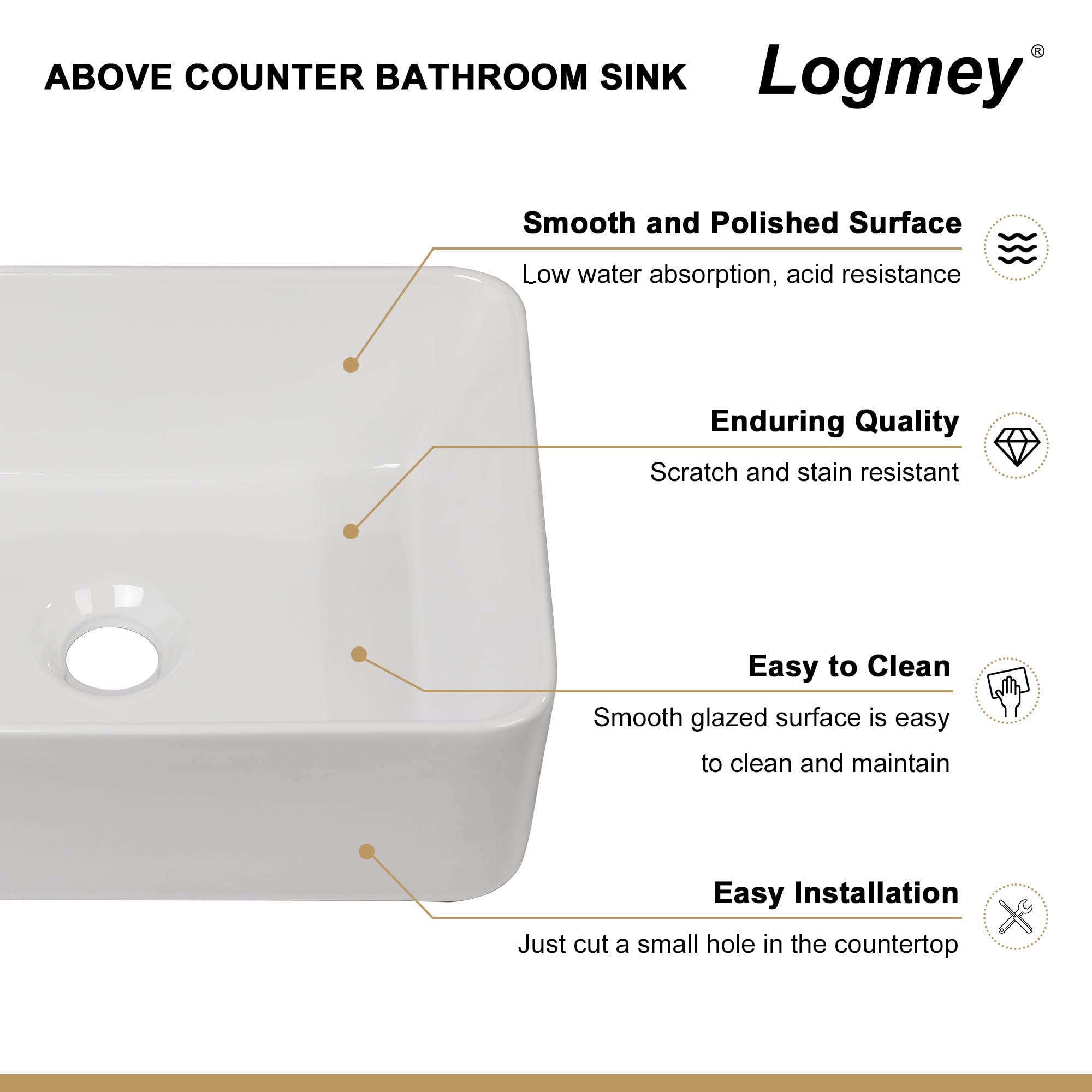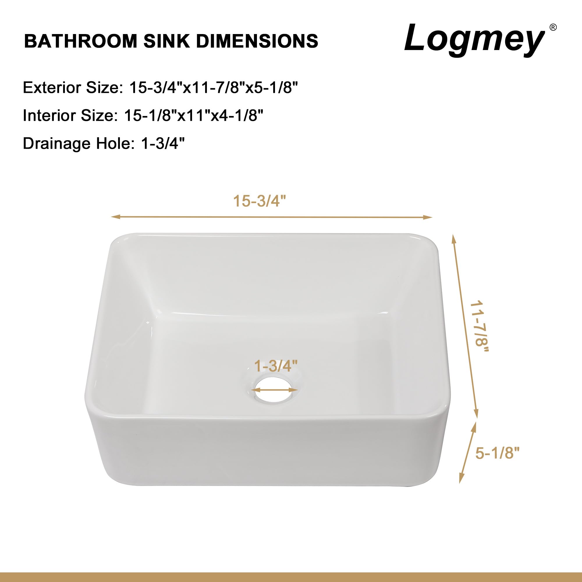 Logmey Ceramic Rectangular Bathroom Vessel Sink