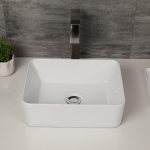 - White Vessel Sink Size:Exterior Size: 15-3/4″Wx11-7/8″Dx5-1/8″H. Interior Size: 15-1/8″Wx11″Dx4-1/8″H. Fit 1-3/4″ standard center drain hole. Faucet and pop up drain not included – must be purchased separately.It is recommended that the cabinet be a minimum of 3 inches larger than the size of the product.