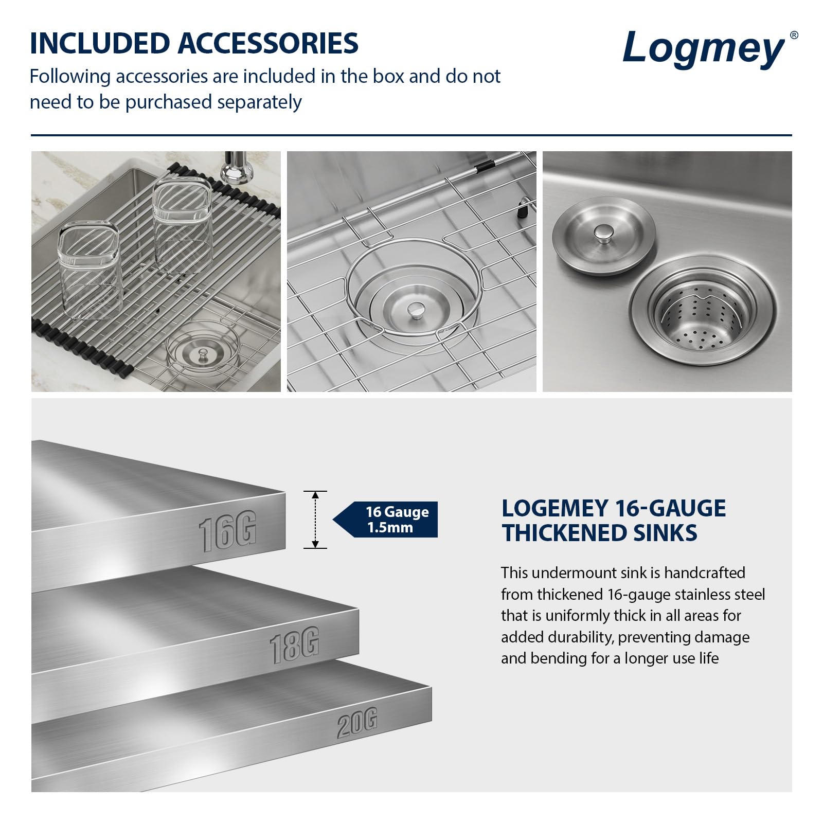 - What’s in Package: Undermount stainless steel sink, drain assembly, roll up rack, bottom rinse grid, cutout template and installation instruction.We recommend that you refer to the product dimensional drawings and cut the countertop after you receive your sink to ensure an accurate installation.
