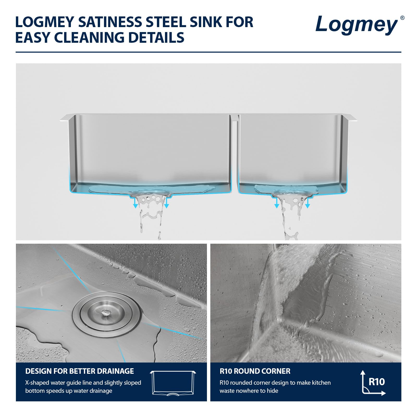 Logmey is a large brand with professional production lines and cutting-edge technology, adhering to the design concept of innovation, beauty and practicality, producing and creating a series of kitchen and bathroom products that are loved and trusted by customers and custom home builders.33×19 Inches Undermount Double Sink