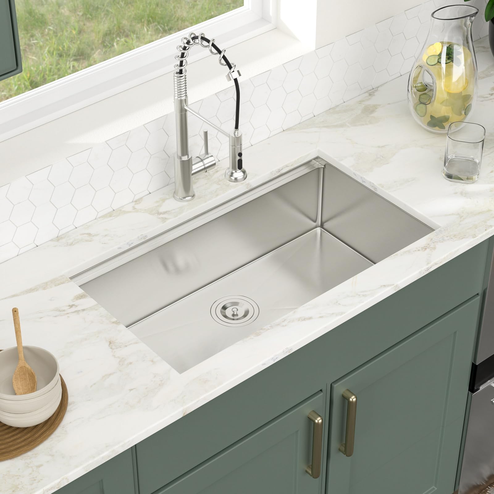 - High Quality Material: This 33 undermount Kitchen sink is constructed with dent-resistant SUS304 Stainless Steel 16-gauge for superior strength and durability.Commercial grade brushed finish to make the surface scratch resistance-easy to clean and long-lasting.