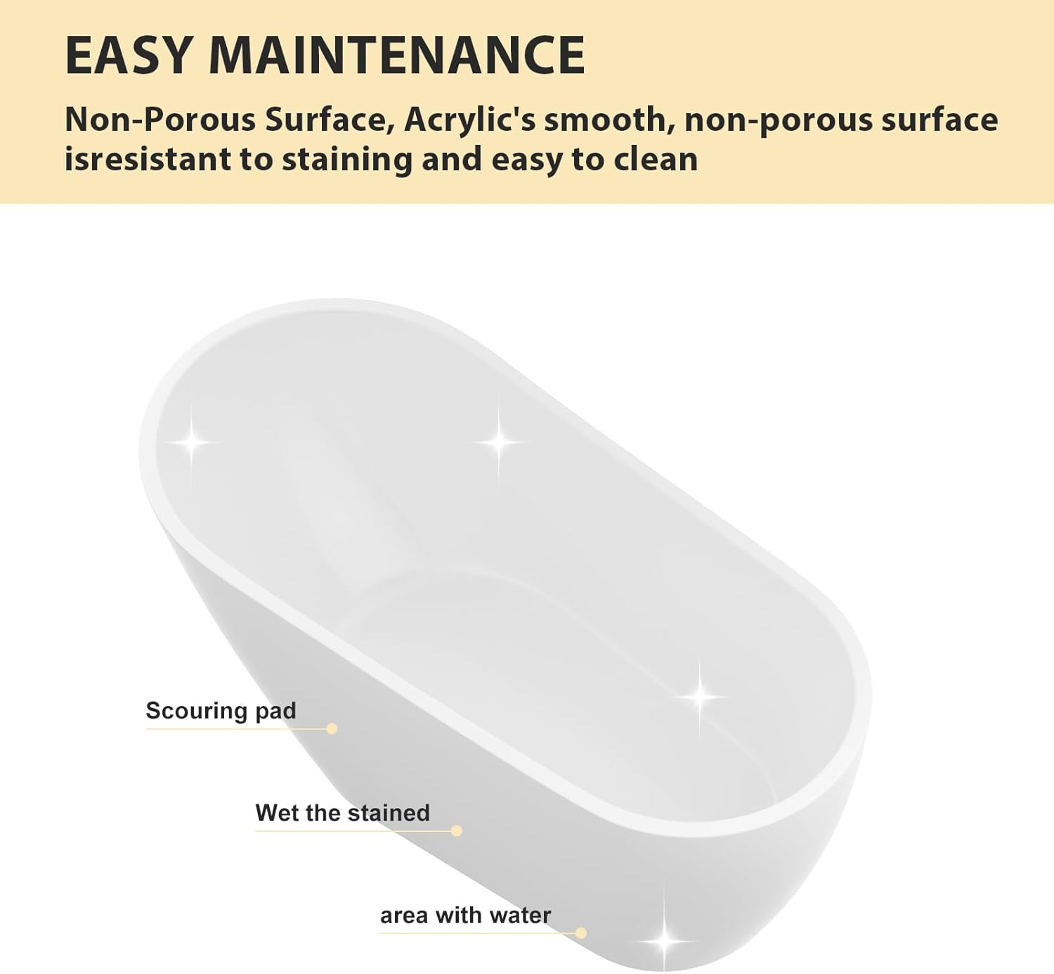 - Easy to Install and Maintain: Equipped with installation instructions, the simple installation process gets your tub ready quickly. Its smooth surface makes cleaning effortless, saving you time and keeping the tub looking fresh.