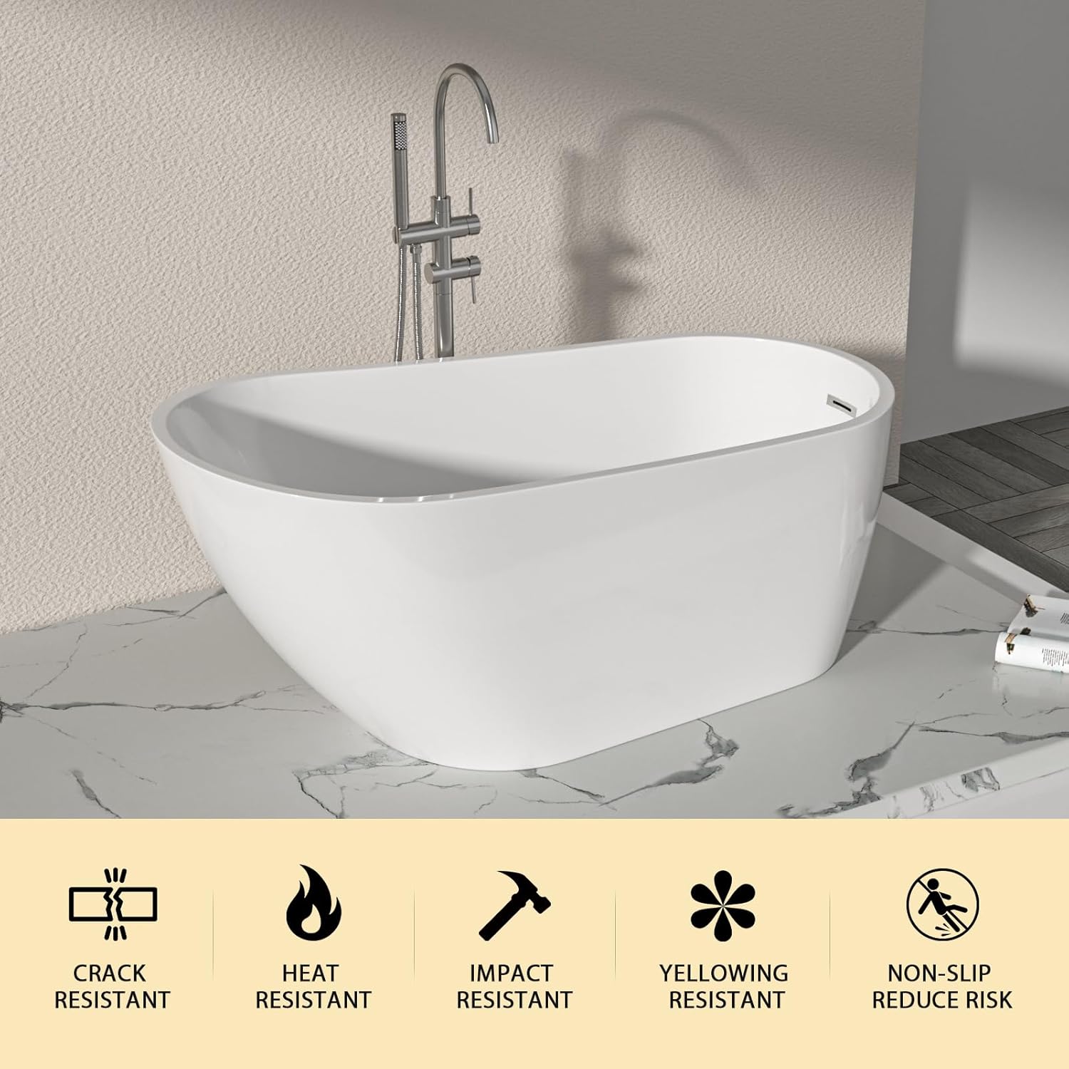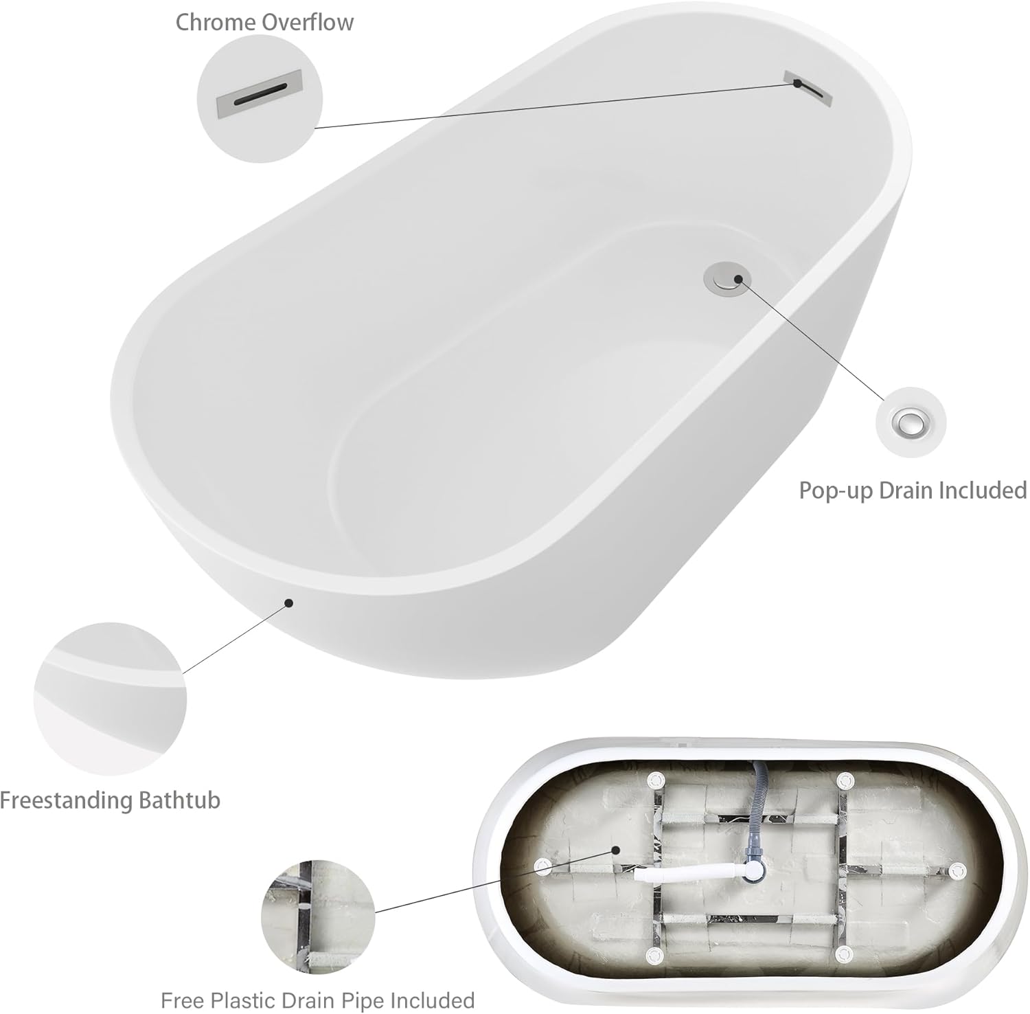 - Elegant & Versatile Design: The white acrylic finish, paired with the drain and overflow assembly, adds a touch of elegance. It seamlessly fits into both classic and modern bathroom styles, enhancing the overall decor.