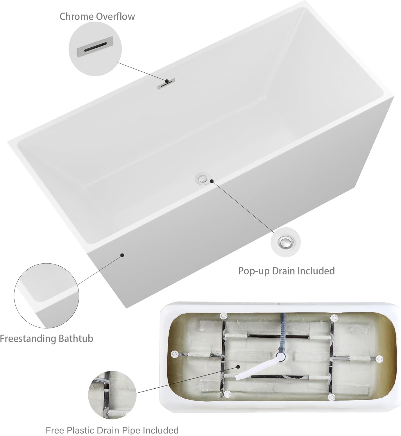 | Included Components | Bathtub, Drain, Overflow Assembly, Installation Manual |