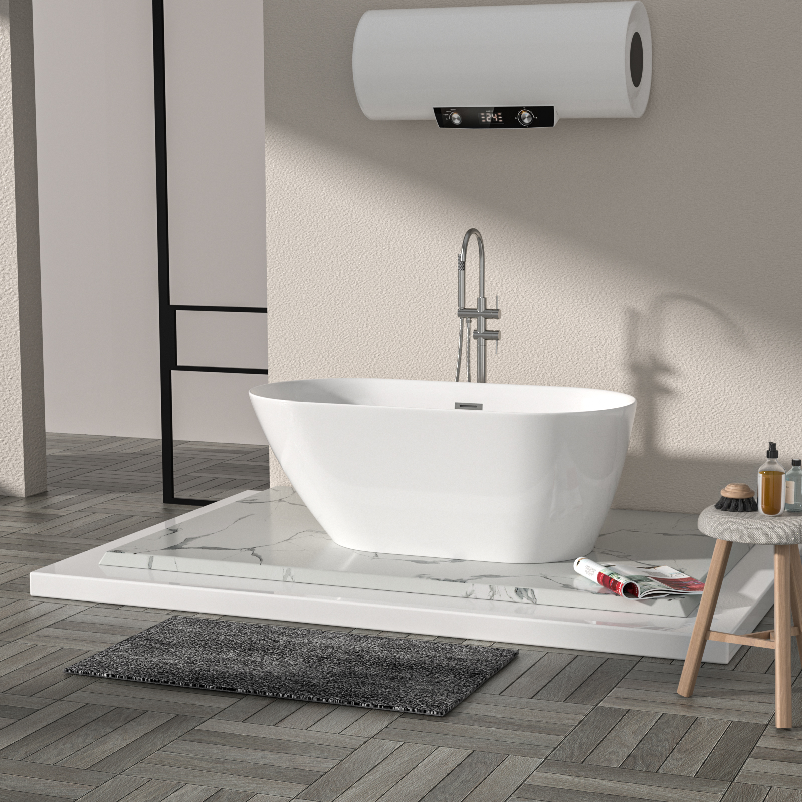 - Freestanding Bathtub with Overflow Function: Lets you enjoy deep, relaxing soaks without stress—excess water is automatically diverted when it nears the edge, preventing spills, floor damage, and slip hazards.