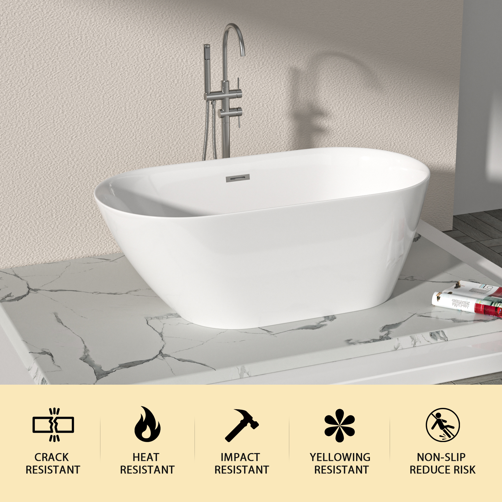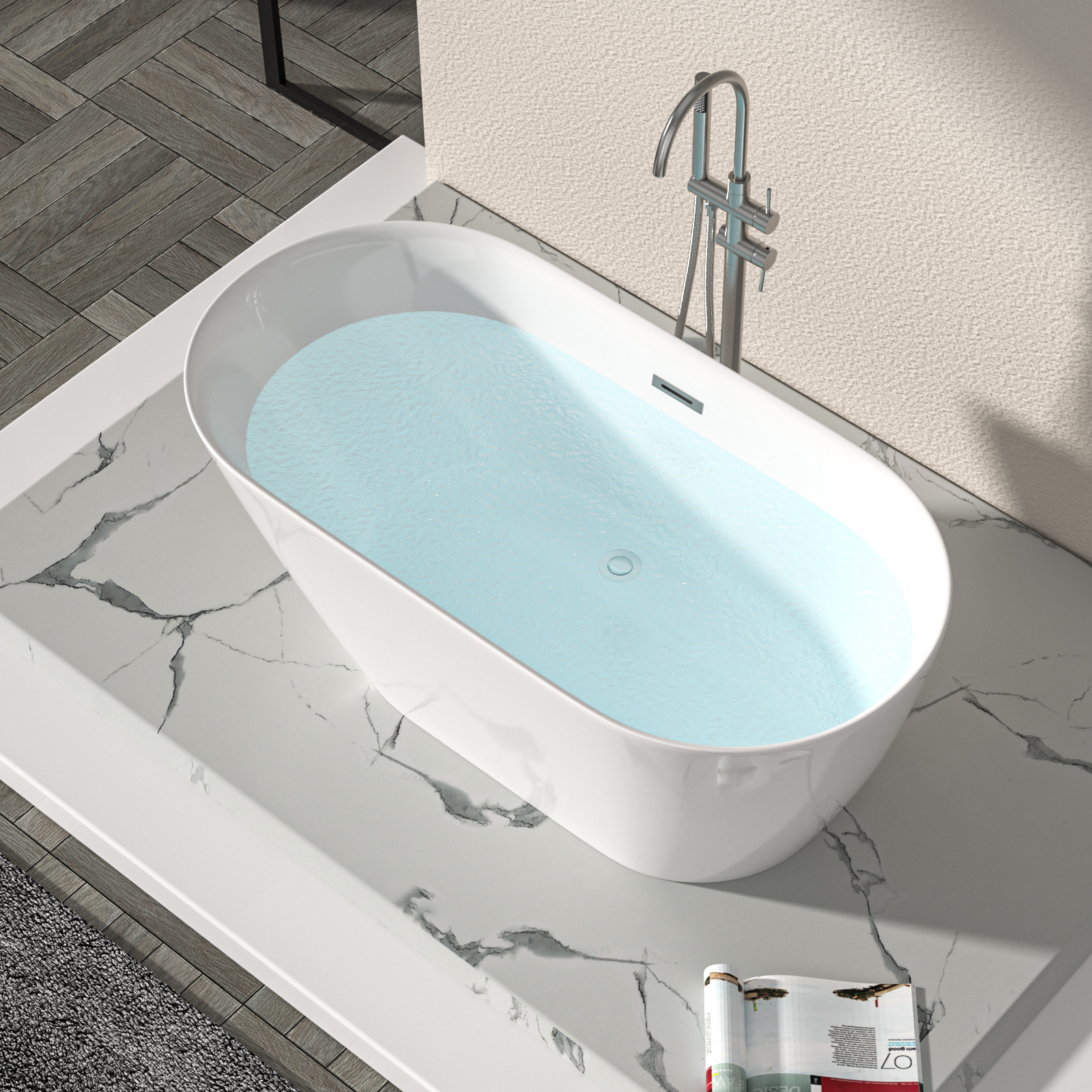 - Durable Acrylic Construction: Crafted from high-quality acrylic, it’s resistant to scratches and stains. This ensures the tub stays in great condition, maintaining its appeal over time with daily use.