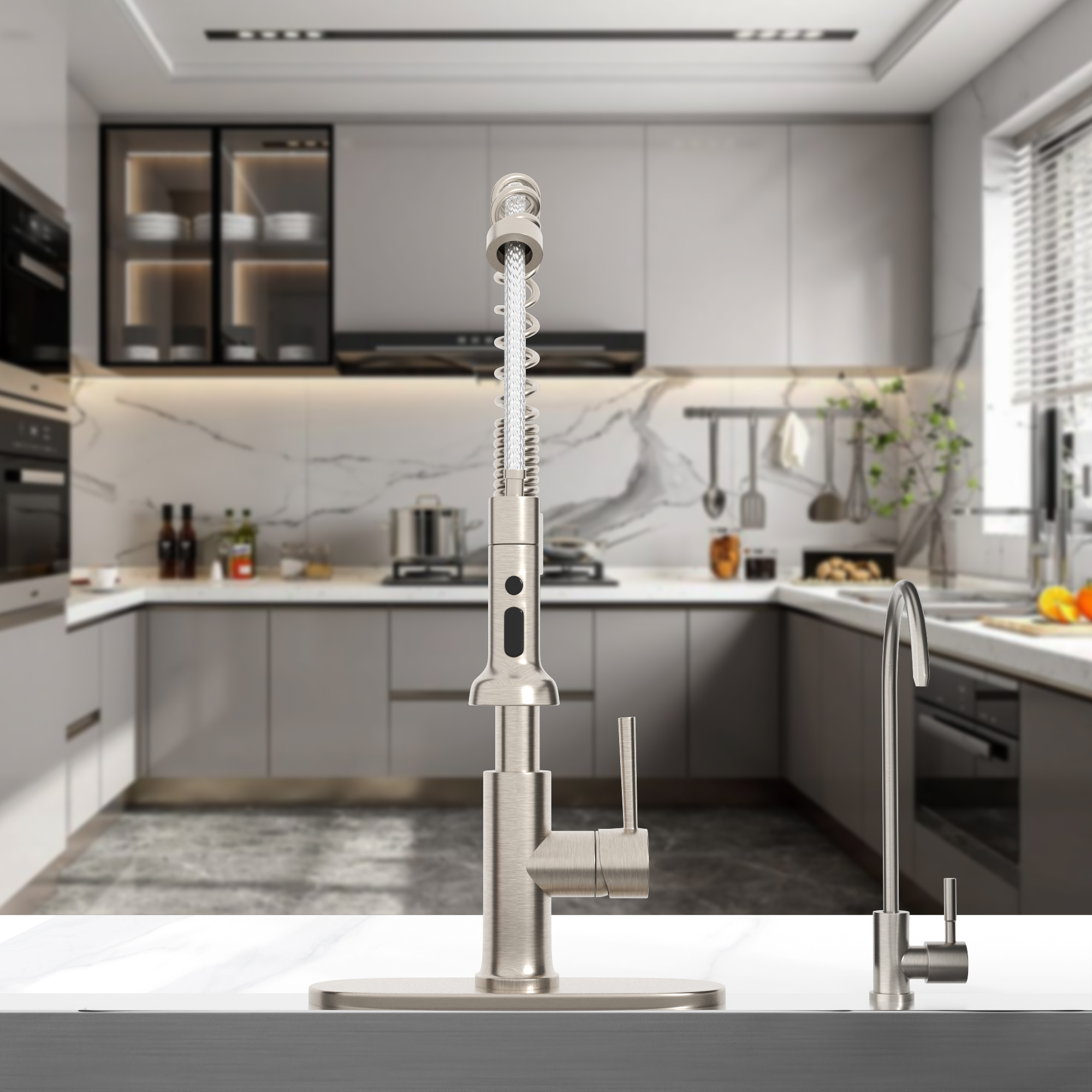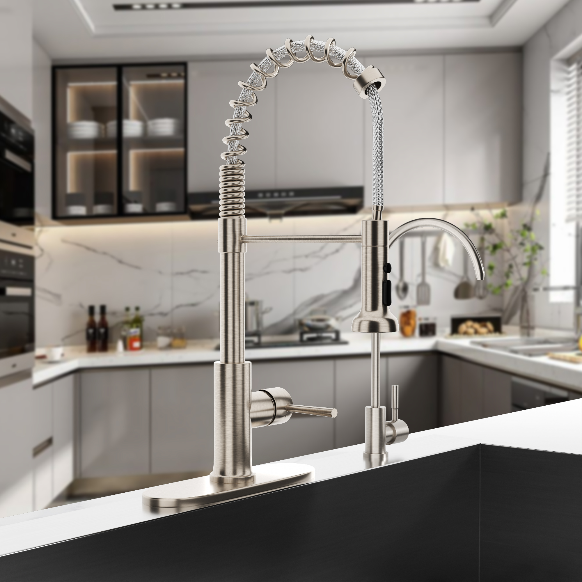 Logmey Pull Down Kitchen Faucet Kitchen Taps Single Handle Shape of Spring in Brushed Nickel