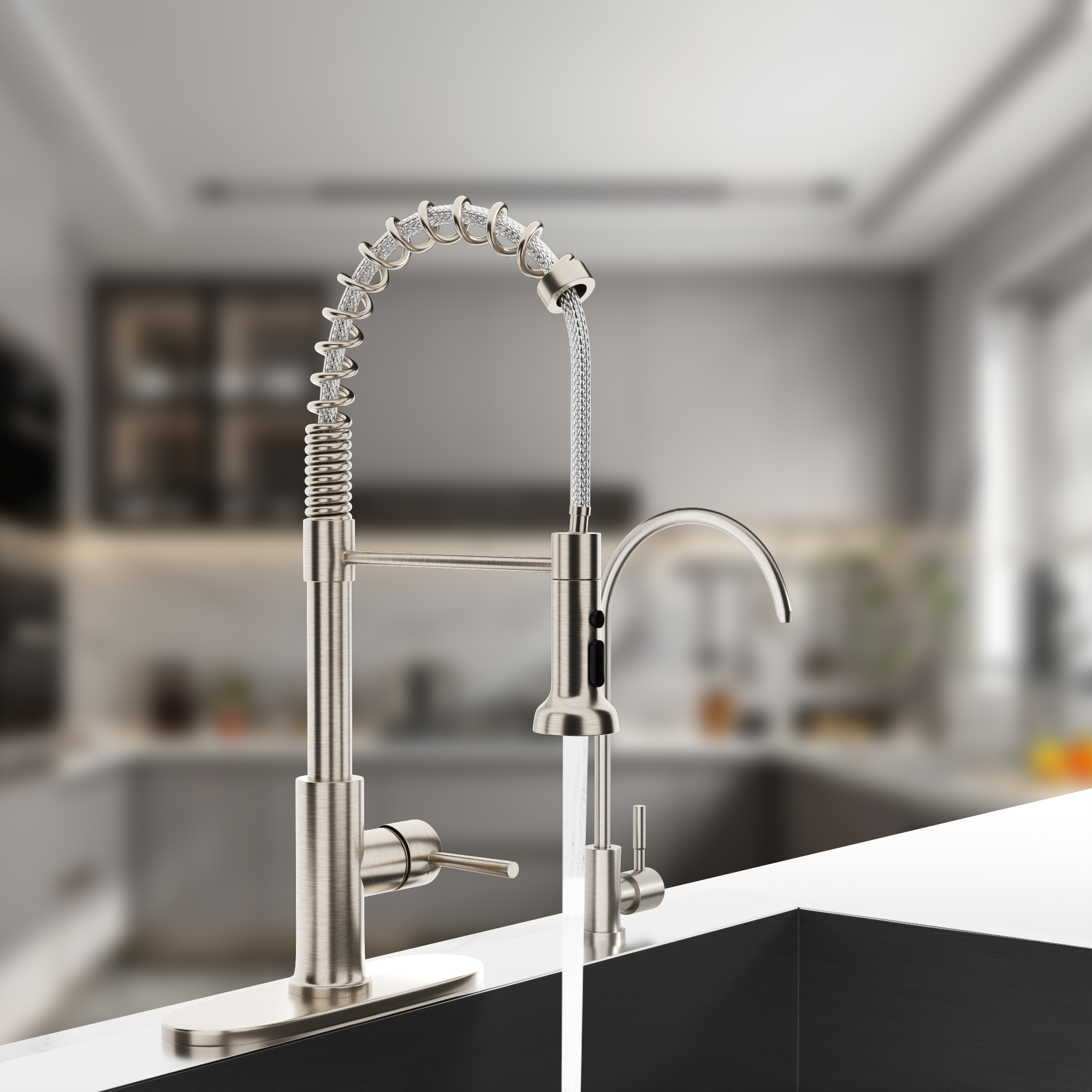 • 3 Water Modes: Pull-Out spray head with toggle button to select spray or stream or pause modes conveniently in the palm of your hand.
