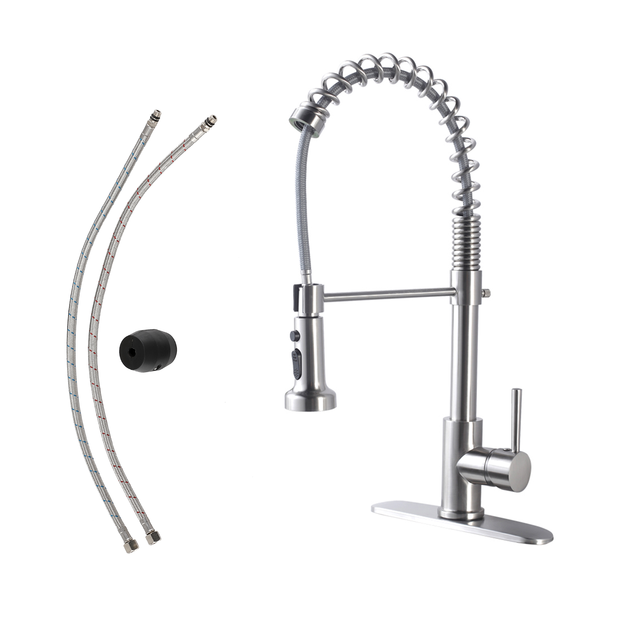 This Pull Down Kitchen Faucet is where to meet the style of Modern Design for the modern home. Constructed from durablesolid brass, this beautiful commercial-style Pull Down Kitchen Faucet is a must-have in any home.What’s Included?