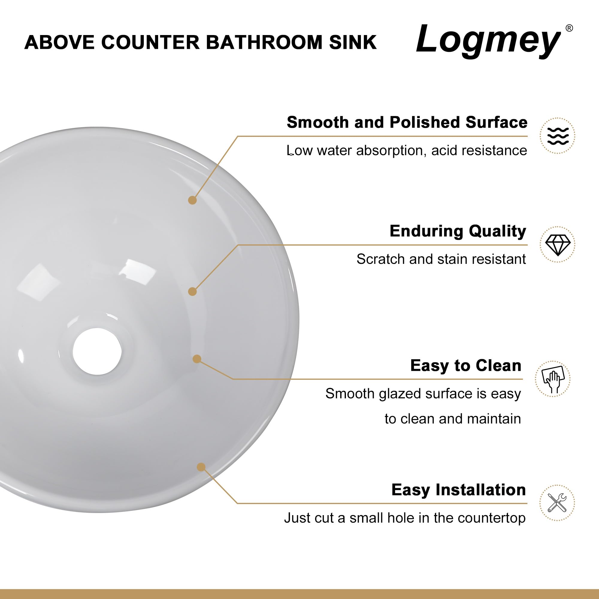 Logmey Ceramic Round Bathroom Vessel Sink